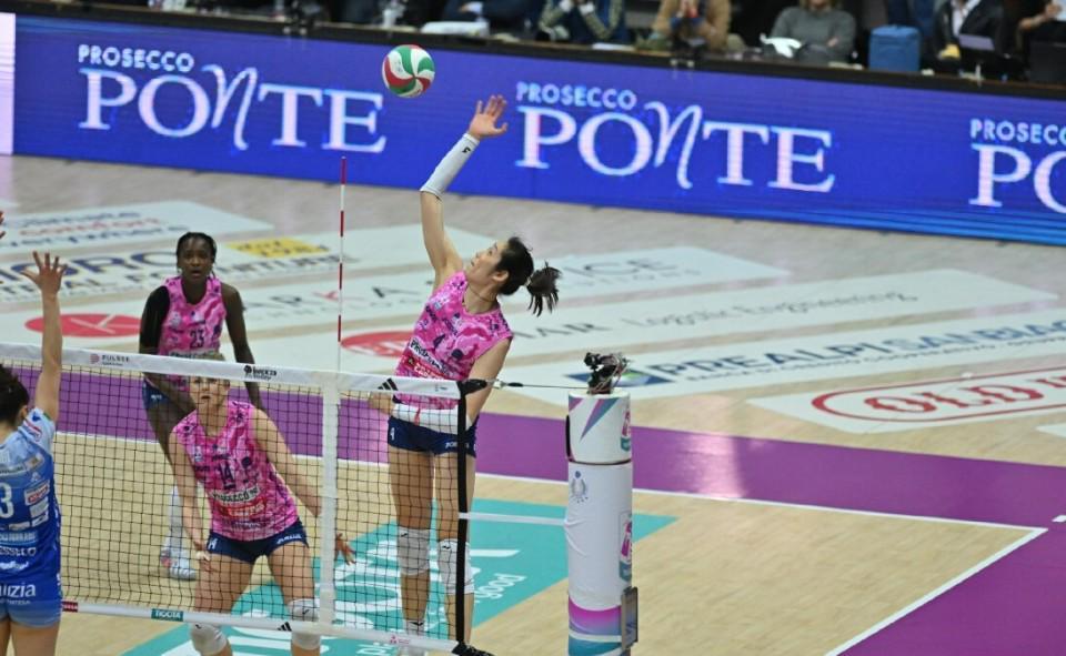 3月16日凌晨,女排意甲半决赛首场比赛开打,科内利亚诺队在主场迎战诺瓦拉队。本场比赛双方战满5局,科内利亚诺让二追三3-2实现大逆转,在五场三胜的系列赛当中1-0占得先机。中国球员朱婷在比赛中拿下21分,并荣膺单场MVP。